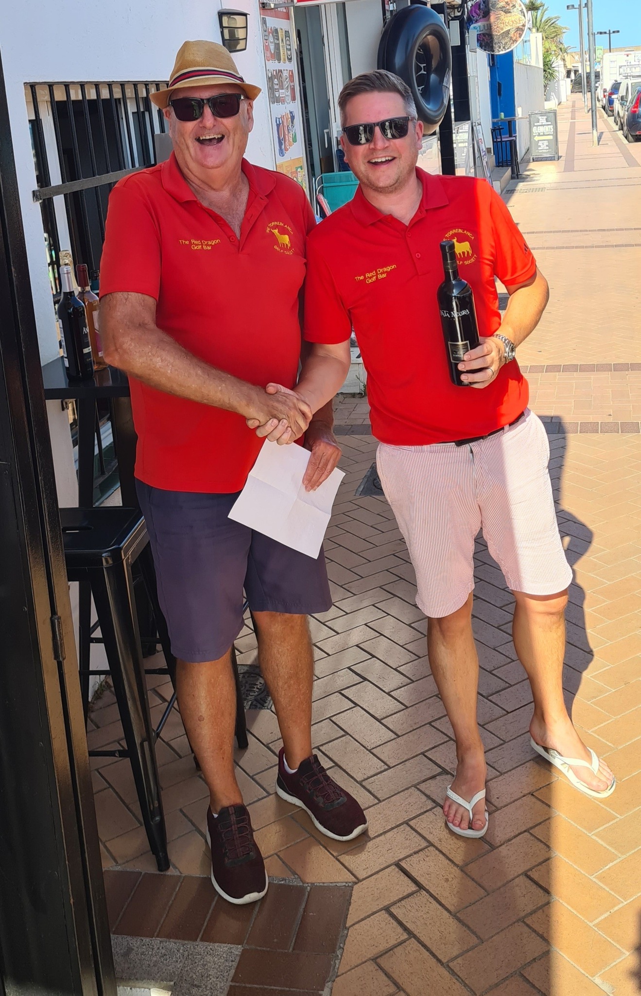 After a long hot day on the course everyone was looking forward to a nice few quiet beers and the presentation back at the dragon but alas the peace was shattered yet again when the winner was announced and it turned out to be one of the winners from last week and in his own inimitable style let out a yell in a broad Northern Irish accent of “Get the f**k in there”.
